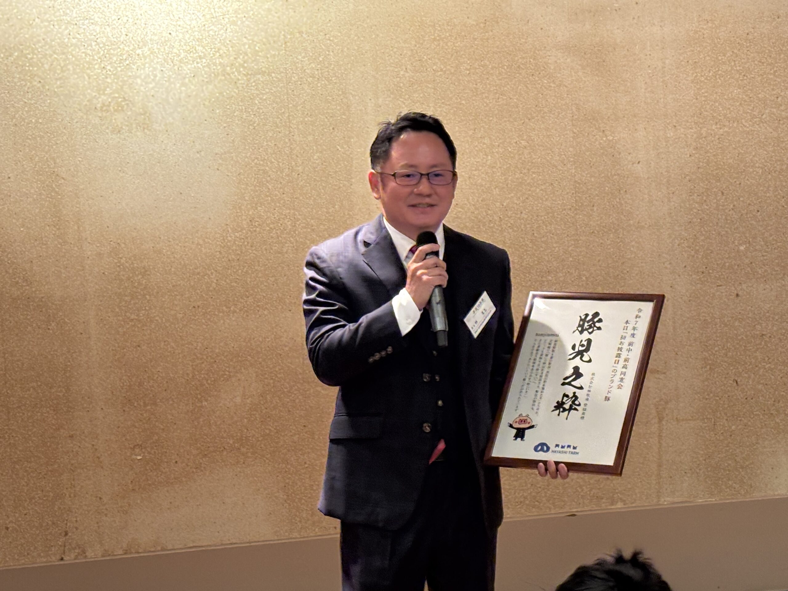 OBの林氏による料理で使っているお肉の説明。ご子息が現役団員。