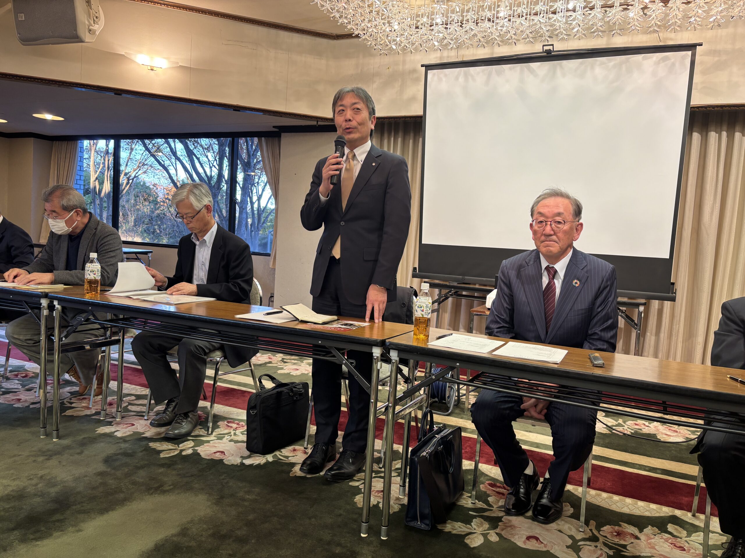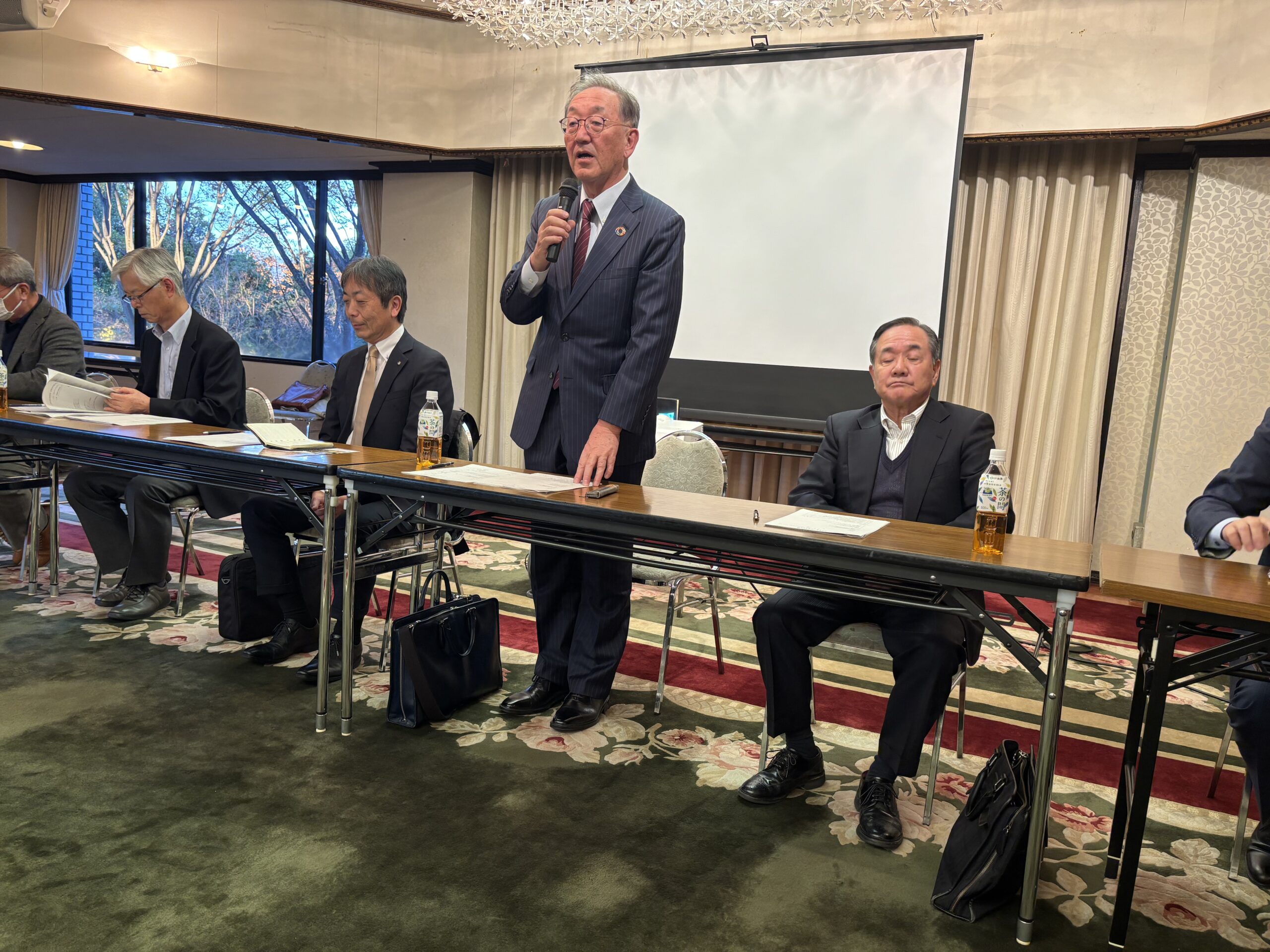 合同会議で挨拶する反町会長